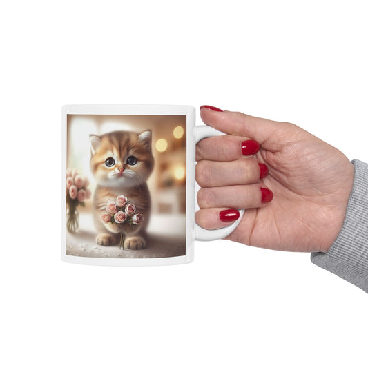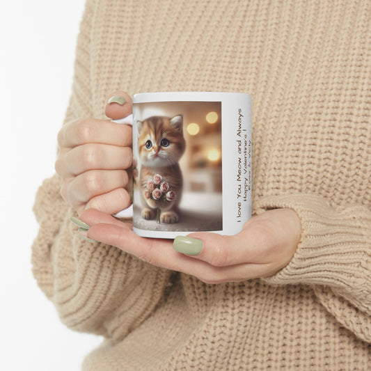 Custom Cat with Roses Valentine Mug Cute Cat - Cat lover Gift