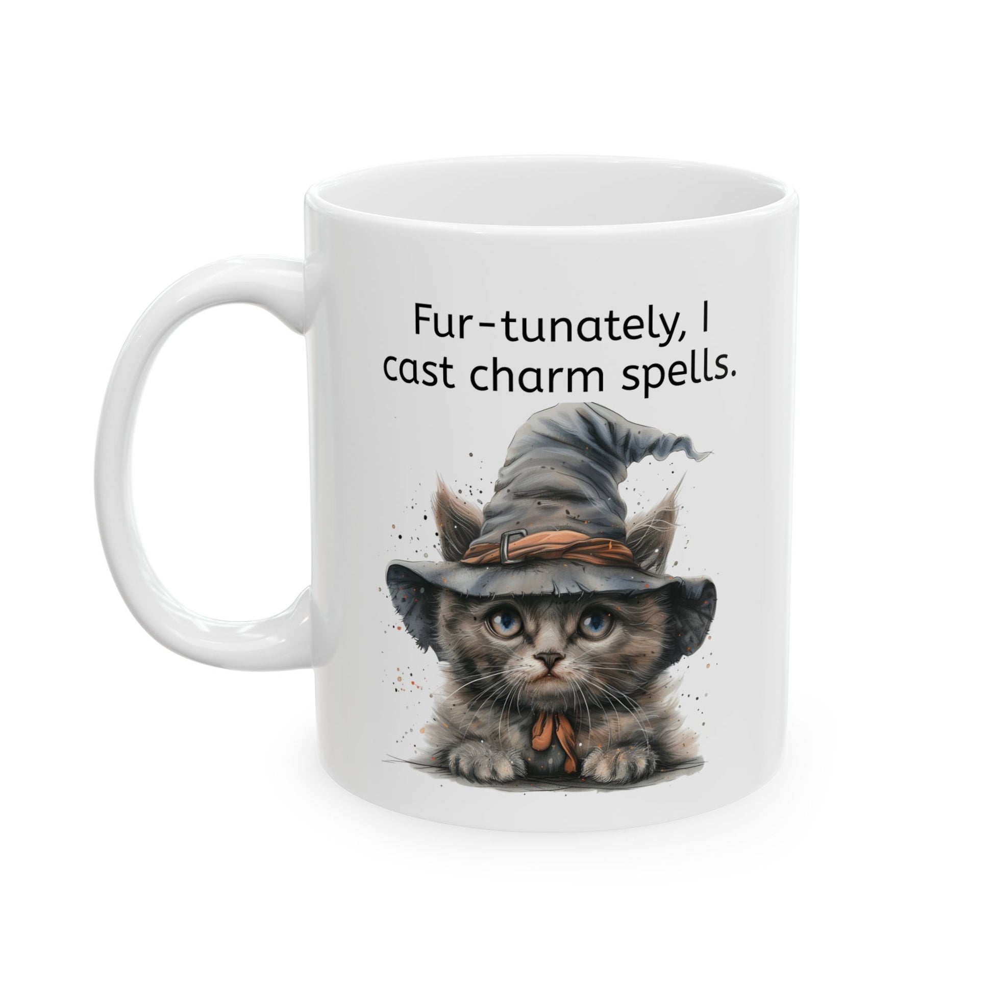 Cat Mug for Cat Lovers/ / Cat Moms/ Halloween Cat with a Witch hat
