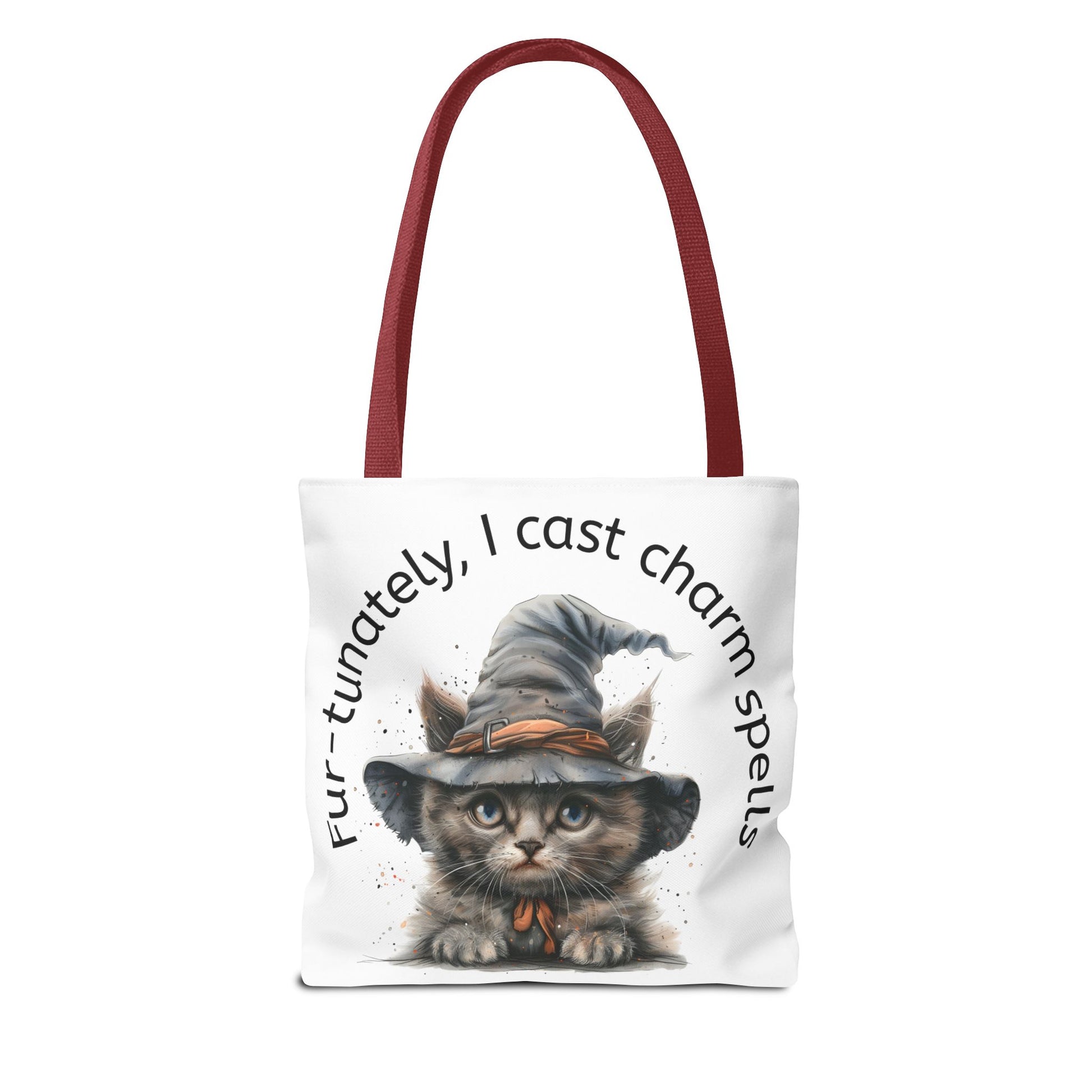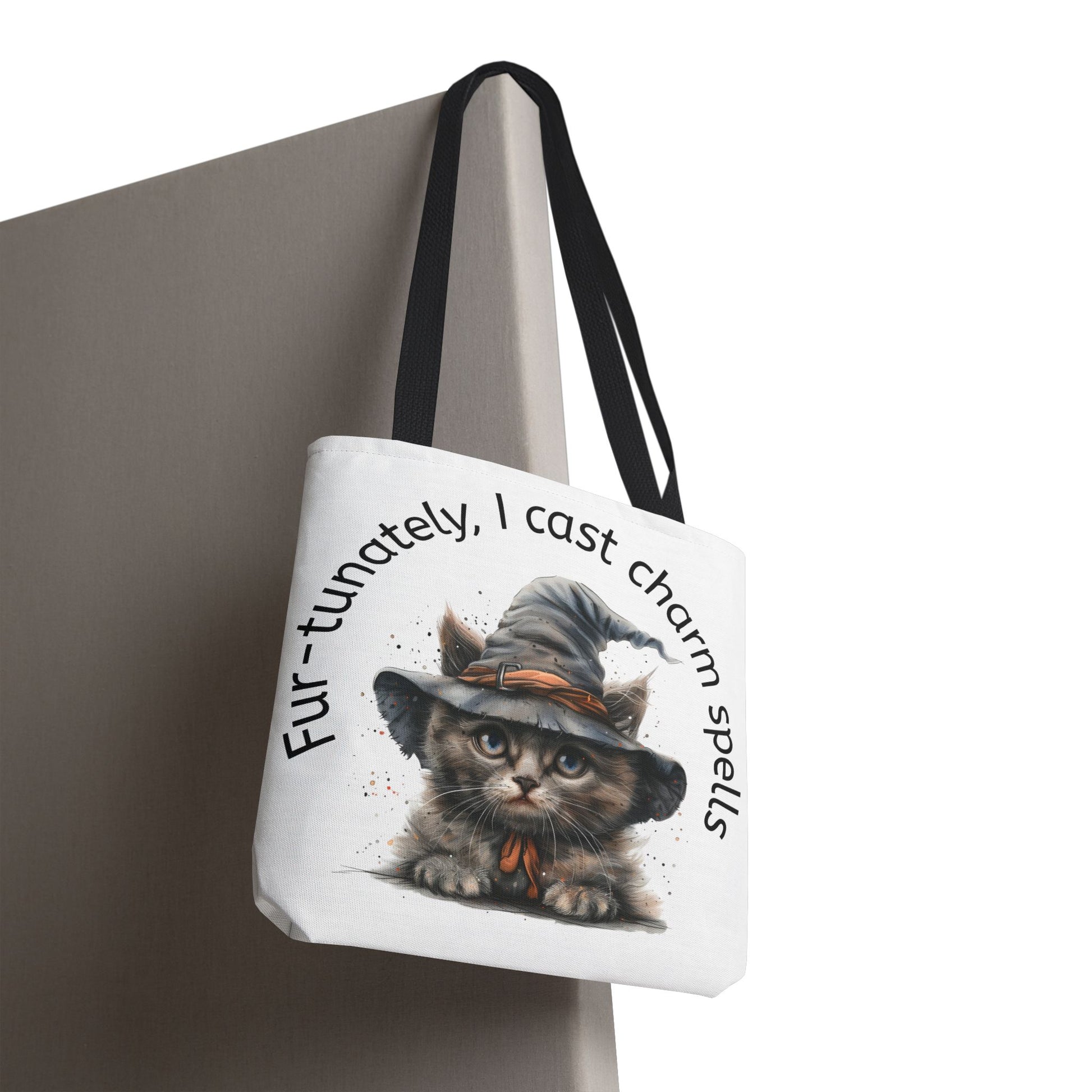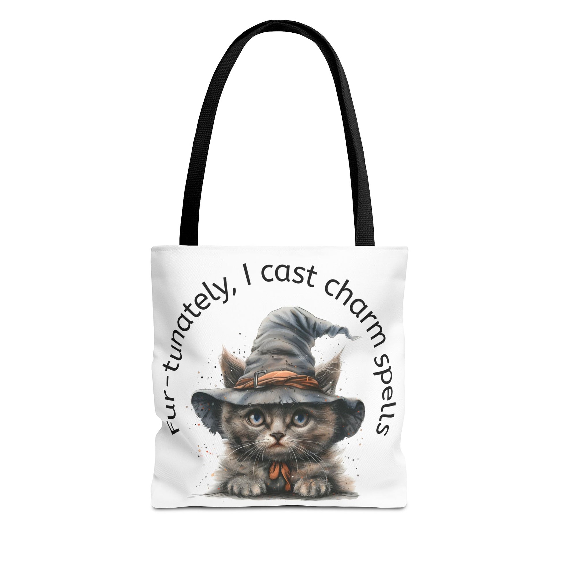 Tote Bag Cat Design with Witch Hat- Cat lovers- Cat moms